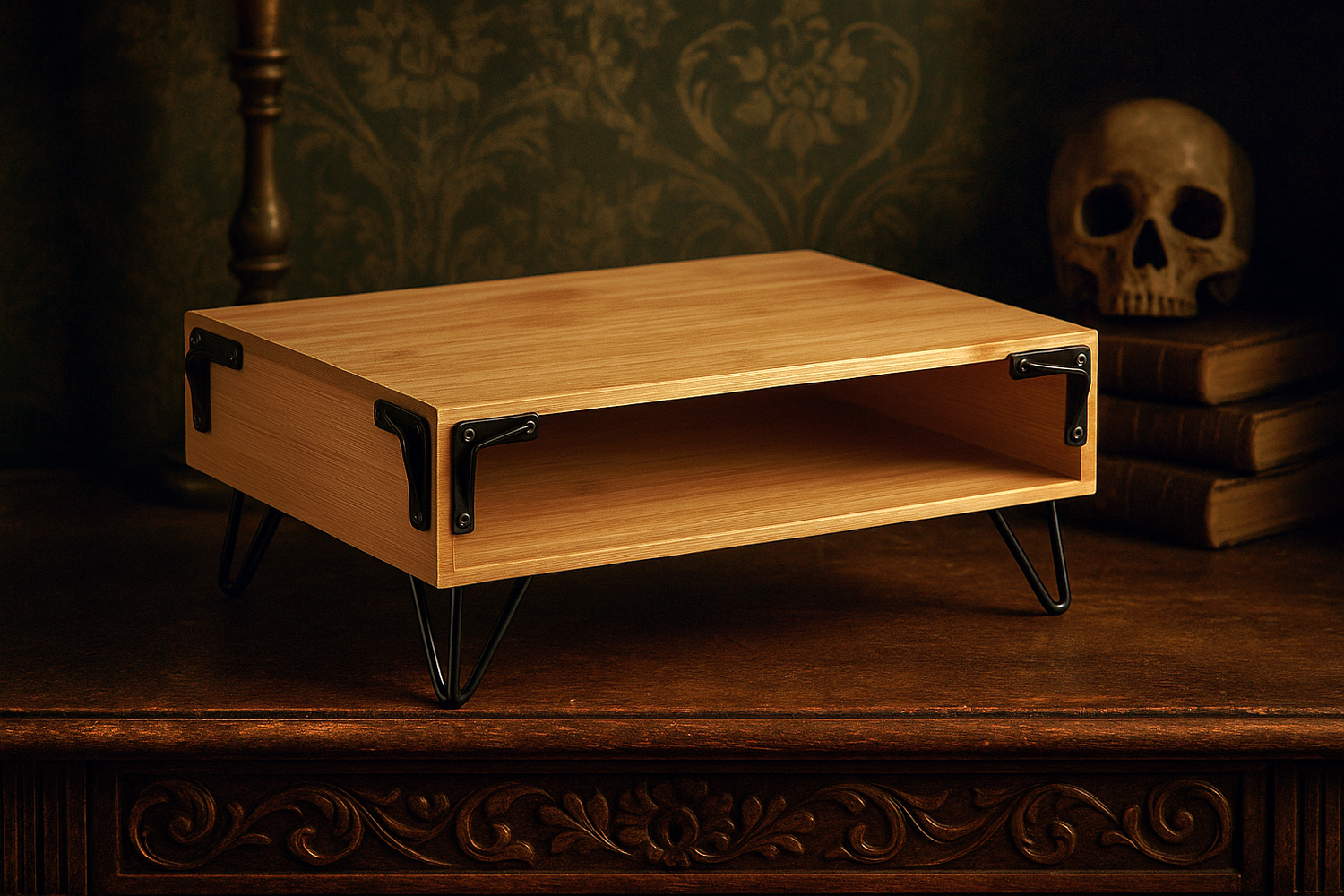 Crafted from sustainable bamboo and anchored by sturdy black metal legs, this handcrafted altar is more than furniture. It's a vessel. A keeper of rituals. A sanctuary for your sacred tools, oracle decks, crystals, candles, or whispered intentions.