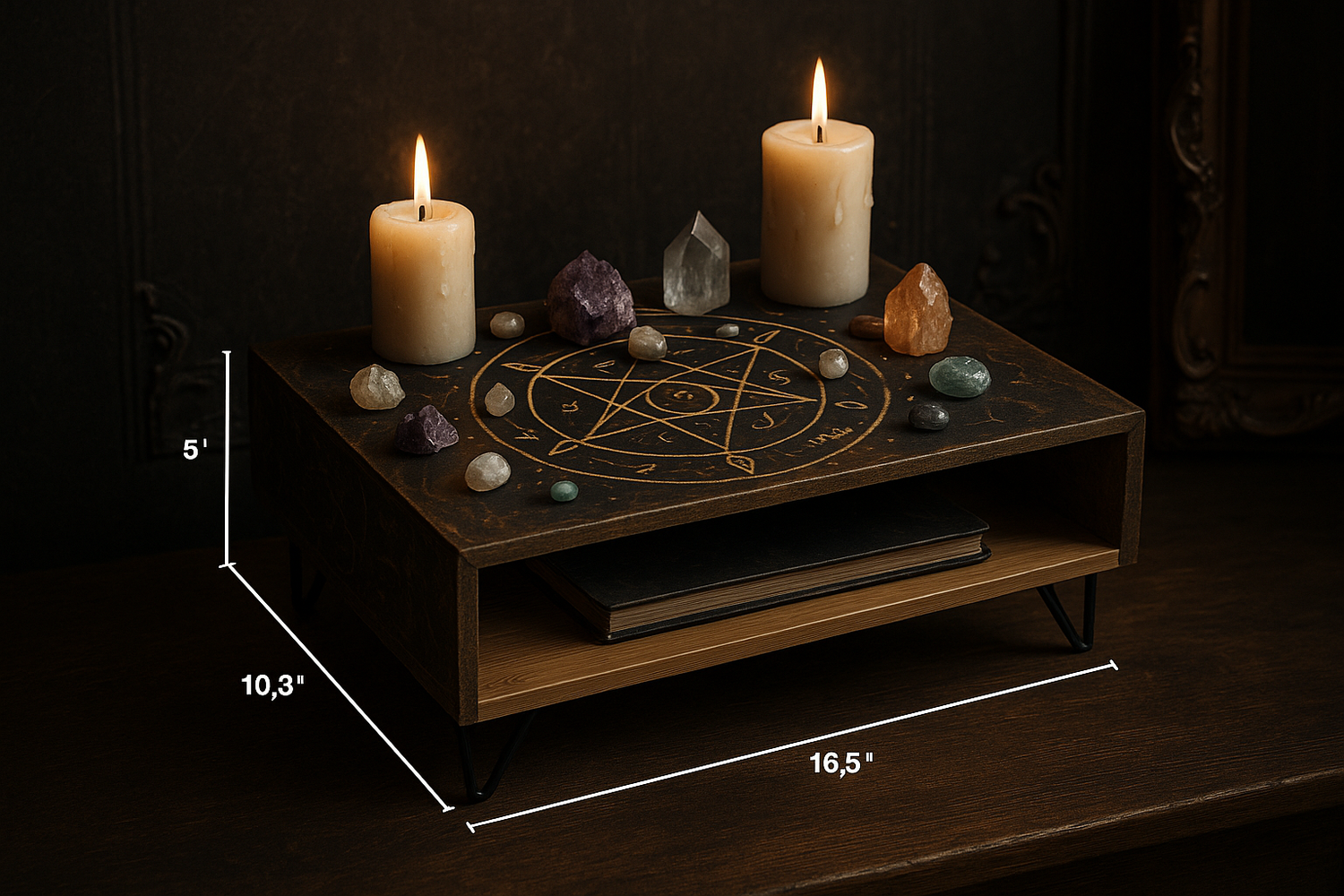 With a built-in storage shelf beneath the altar top, there's room for both the seen and unseen—your magic, your memories, your unfolding path.